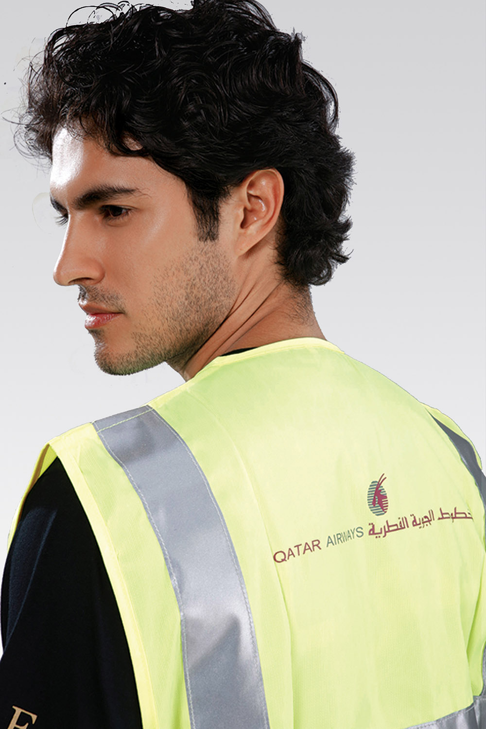 سترة صفراء مع شريط عاكس للخطوط الجوية القطرية